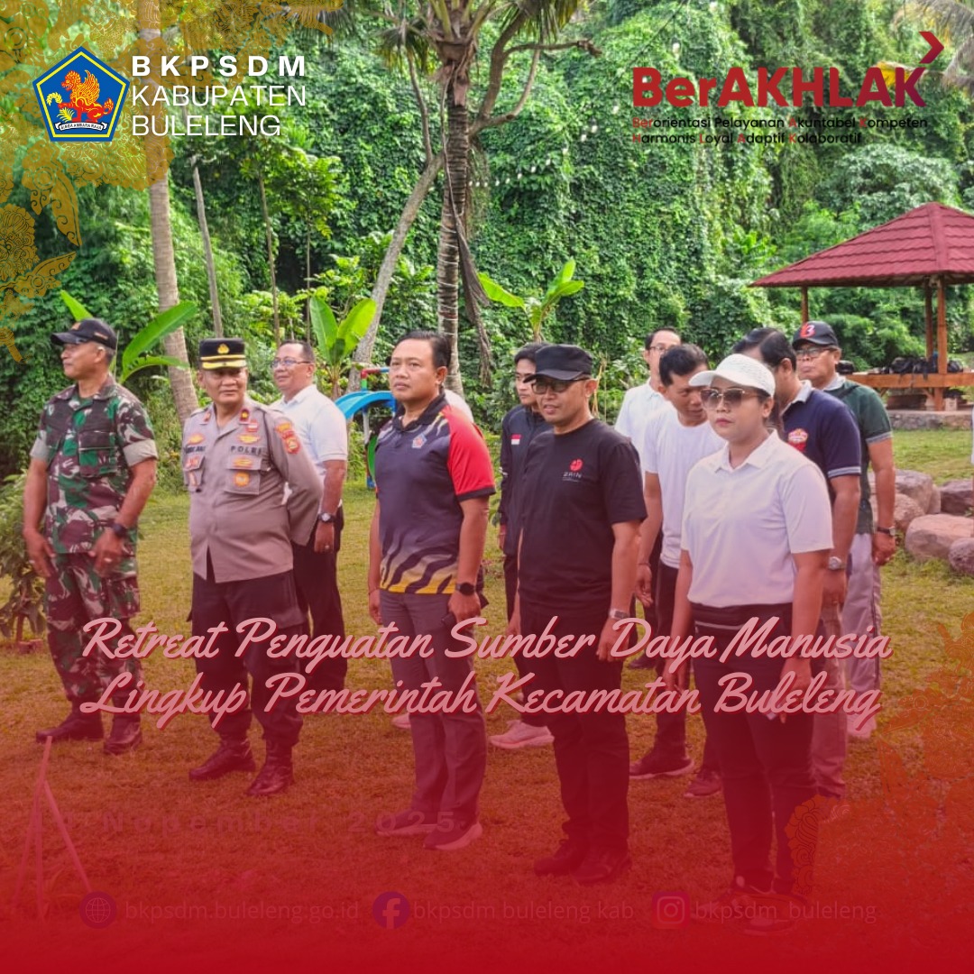 Singaraja, 14 November 2025 --- Kepala Badan Kepegawaian dan Pengembangan Sumber Daya Manusia (BKPSDM) Kabupaten Buleleng, I Made Dwi Adnyana, S.STP., M.AP menghadiri kegiatan Retreat Penguatan Sumber Daya Manusia Lingkup Pemerintah Kecamatan Buleleng di Lembah Cinta 99, Kelurahan Banjar Tegal, Kecamatan Buleleng.